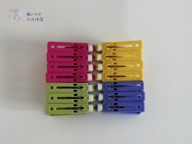 クラフトバンドを続けたいなと思われたら、クラフトバンドに跡がつきにくい、しっかり挟めるこの洗濯ばさみがおすすめです。