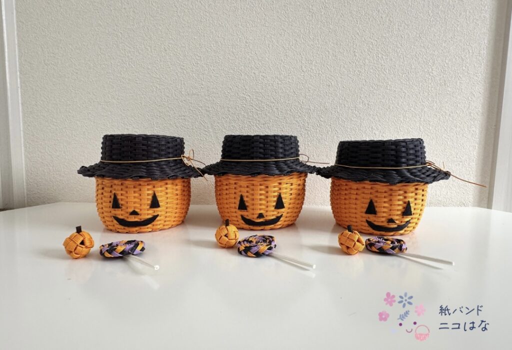 レッスンのときは、ハロウィンのかぼちゃのかごを4つオーダー頂いていたので、かぼちゃのかごを作っていました。