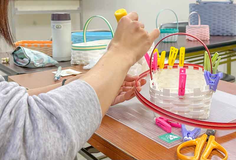 底はかごの土台になる部分なので、丁寧に作ることがとても大切です。